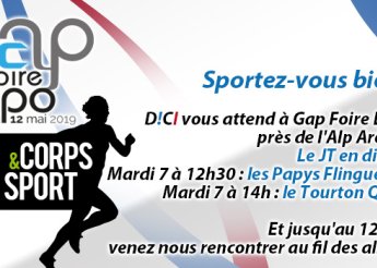 Lire la suite de Du 4 au 12 mai retrouvez D!CI TV sur la Gap Foire Expo ! LoisirsDu 4 au 12 mai retrouvez D!CI TV sur la Gap Foire Expo !A l'occasion de la 37ème édition de la Gap Foire Expo sur le thème Corps et Sport, retrouvez nos émissions dédiées à la...sportez-vous bien !