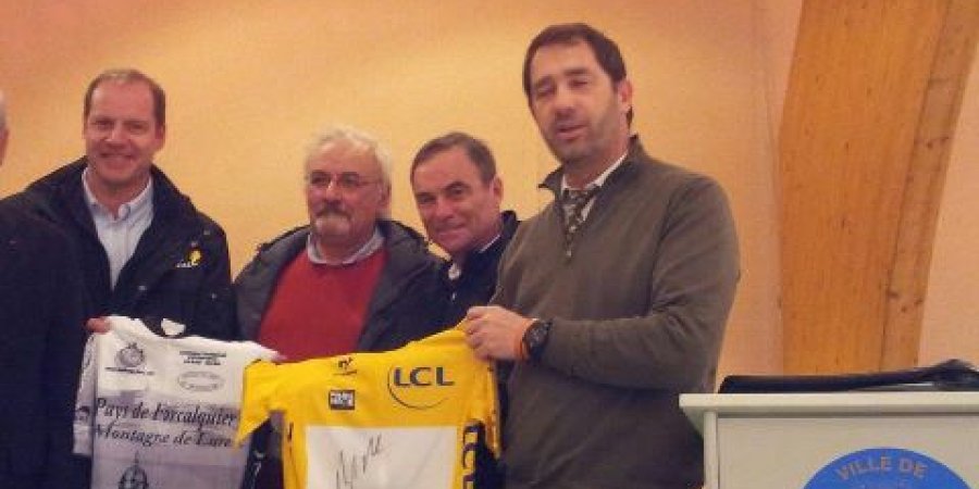 Photo: le Député Castaner avec Berbard Hinaultn et hristian Prudhomme ce vendredi