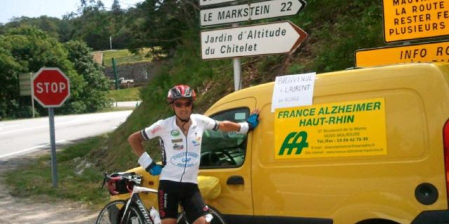 Hautes-Alpes: Enfin des nouvelles de l' Embrunais Laurent Lachaume. Il effectue un Tour de France à vélo sous la forme de 30 étapes qui vont le conduire aux 4 coins de l'hexagone jusqu'au 18 juillet. Aujourd'hui il nous a fait parvenir un message : "Bonjour que c'est bon de faire chauffer les cuisses en montant la Schlucht le Honeck le Markstein et le grand ballon des Vosges et l accueil France Alzheimer chaleureux." On vous rappelle que Laurent en entreprit ce périple pour rencontrer les associations qui œuvrent contre la maladie d’Alzheimer
