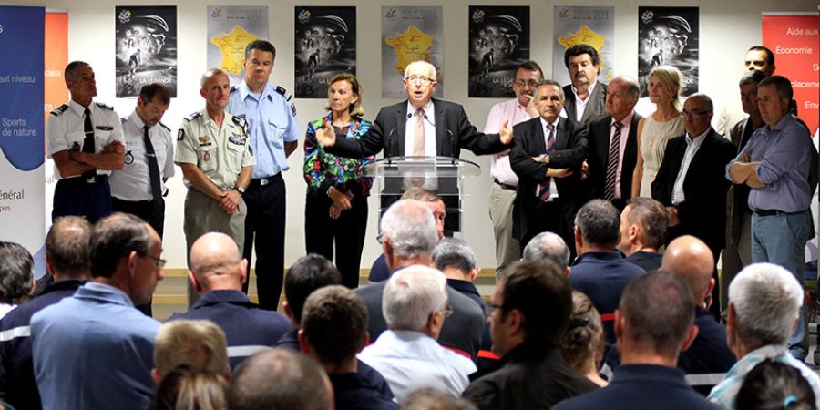 Hautes-Alpes: Deux mois après le passage de la centième édition du Tour de France dans le département, le Conseil Général des Hautes-Alpes par la voix de son président Jean-Yves Dusserre lors d’une réception amicale en présence notamment de nombreux élus, parlementaires ou représentants des services de l’Etat, a tenu à remercier chaleureusement l’ensemble des forces de sécurité et de secours mais aussi les acteurs locaux sur les communes concernées et tous les services du Département, qui ont œuvré durant plusieurs semaines pour faire de cet évènement au cœur de l’été, un moment fort de l’année.