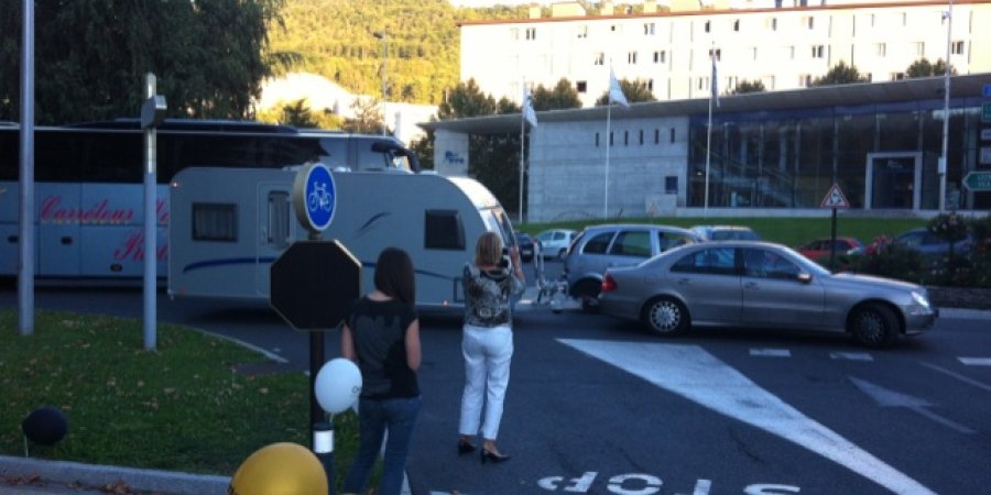 Hautes-Alpes: Accrochage au Rond de l'Europe à Gap. Une caravane hollandaise et une voiture gapençaise se sont accrochés. Juste de la tôle froissée mais un bouchon s'est créé. Merci à Patrick Grillet, reporter D!CI qui nous a envoyé la photographie du fait divers.