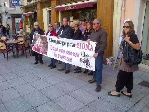 Hautes-Alpes: Une quinzaine de personnes participent à la marche blanche pour la petite Fiona à Gap. Parti de l'esplanade de la paix, direction la rue Carnot dans le centre-ville de Gap... Le cortège s'est dirigé en direction la Chambre des métiers et de l'artisanat, puis devant les locaux du Conseil général, a effectué un arrêt à la place de la République pour arriver devant la place de la cathédrale où Nadia Lamine, présidente de l'association pour Fiona, a déposé un cadre avec une photo de Fiona entouré de bougies, chacun a pu déposer sa rose blanche au pied du cadre.