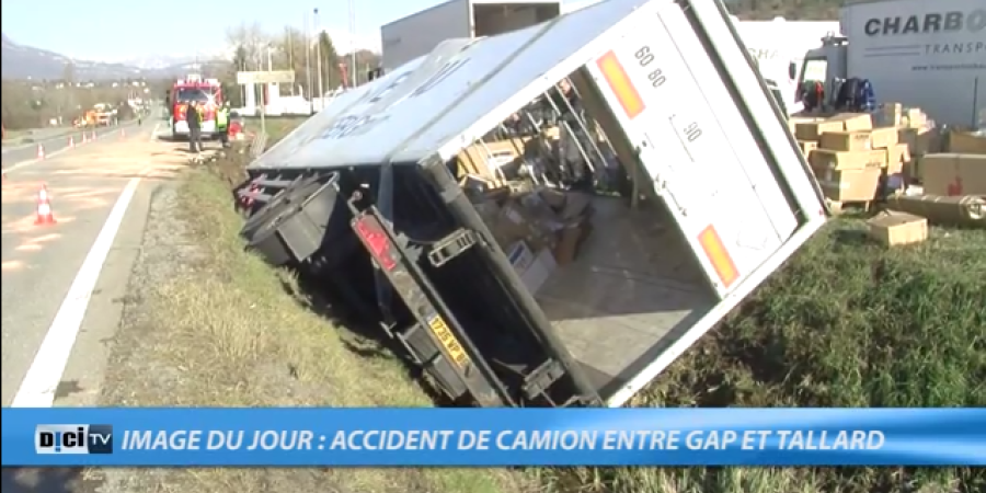 Hautes-Alpes: Un accident s'est produit Plaine de Lachaup à Gap ce matin. C'est un camion qui a été accidenté. Pas de blessés dans l'accident mais le camion transportait des produits chimiques qui se sont déversés sur la route. Un périmètre de sécurité et une surveillance est mise en place en ce moment par les services de secours. La circulation est perturbée dans le secteur.