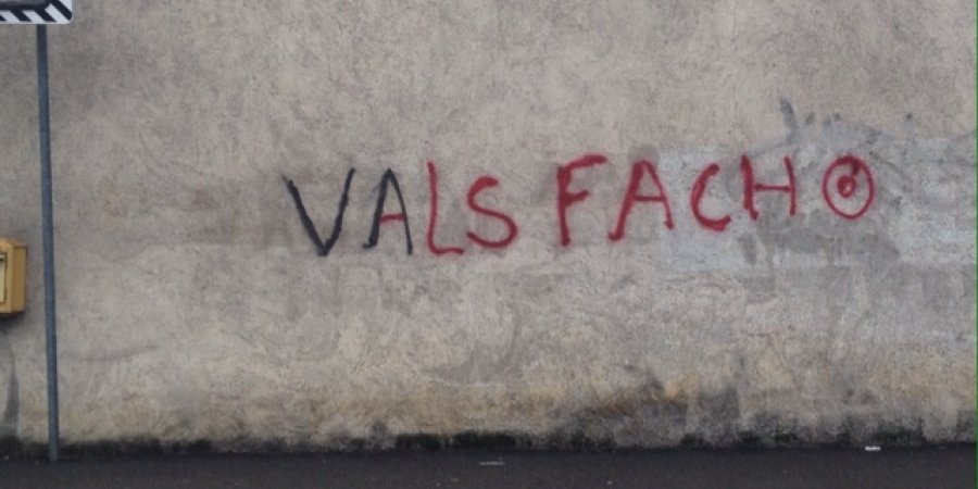 Hautes-Alpes: Et cela continue. Après les trois tags constatés hier Route de Veynes et dans le Col Bayard à la gloire d'Alain Soral et Dieudonné, une nouvelle inscription a été constaté aujourd'hui dans le Centre de Gap. On peut y lire "Valls Facho"sur le Rue des Jardins.