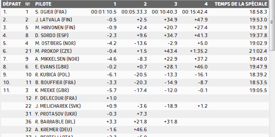 Hautes-Alpes: Les résultats de cette première spéciale : c'est le Polonais Robert Kubica qui a réalisé les meilleurs temps devant le Français Brian Bouffier et notre champion Seb' Ogier. Les résultats ci-dessous. A suivre en live sur dici.fr