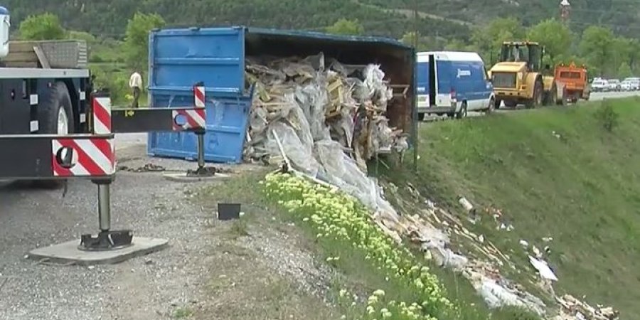 Hautes-Alpes: Les faits se sont passés hier matin peu avant 9h. Un camion benne s'est renversé aux abords du rond point menant à Guillestre. Il n'y a pas de blessés. Seule le conducteur a été transporté vers l'hôpital de Briançon. Il se porte bien. La circulation n'a pas été perturbé. Selon les pompiers, il fallait tout de même gérer les fuites de carburant, environ 300 litres de gasoil. Le camion a été relevé par une grue.
