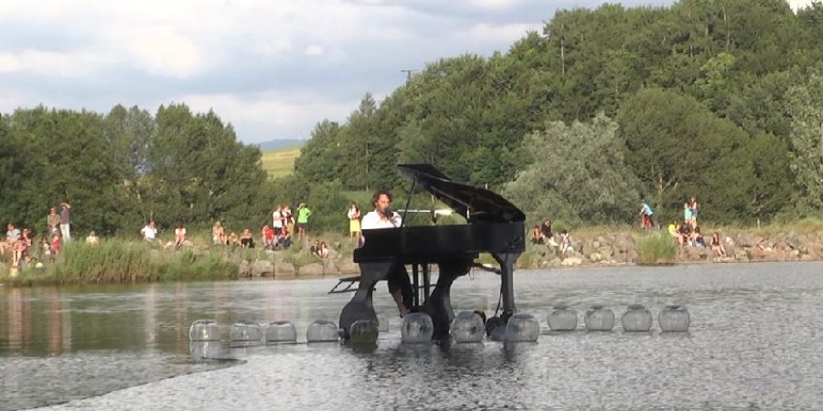 Hautes-Alpes: Hier le piano du Lac a flotté sur le lac de Pelleautier pour le plus grand plaisir d'un public venu nombreux. Une soirée douce et musicale dans une ambiance détendue. Reportage