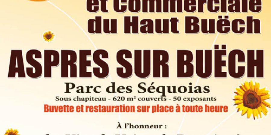 Hautes-Alpes: Venez assister à la 6ème Foire Artisanale et commerciale du Haut Buëch organisée par les commerçants et artisans du canton à Aspres sur Buëch les 20-21-22 juin prochain. Sous un chapiteau situé dans le Parc des Séquoias; 620 m2 et 50 exposants. A l'honneur de cette 6ème édition : Les Vins de Vaison la Romaine. Au programme des animations , ateliers, démonstrations, vente flash, animation enfants et nocturnes. La foire est ouverte au public le Vendredi de 14h à 22h, le samedi de 10h à 22h et le dimanche de 10h à 19h. L'entrée est libre.
