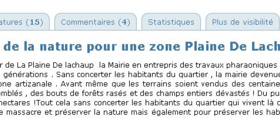 En effet, un collectif d'habitants vient de lancer une pétition en ligne, qui s'intitule: "Contre le massacre de la nature pour une zone Plaine De Lachaup". Joint par téléphone, l'auteur de cette pétition explique les raisons de la gronde. "Tout d'abord, il faut savoir que la Municipalité de Gap n'a jamais communiqué directement avec les habitants. Personne ici n'a été sollicité. Personne ici ne sait ce qu'il se passe. Des vieilles familles du gapençais ont vu débarquer des engins énormes aux portes de leur domicile. Des routes sont construites au devant nos maisons alors que les terrains ne sont pas encore vendus" détaille Patrick Boudouard. Avant d'ajouter: "l'impact sur l'environnement est énorme. Des chênes centenaires sont arrachés. Des arbres à chauve-souris sont rasés. Des points d'eau, remplis de batraciens sont bouchés. Nous tirons la sonnette d'alarme".