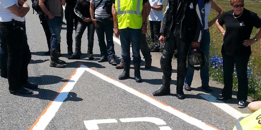 Hautes-Alpes : c'est une trentaine de motards en colère qui s'en est pris ce matin aux radars de la Vallée de la Durance à Saint-Etienne-le-Laus et à celui d'Aspres-sur-Buëch... Ils ont en fait, marqué un grand « R » sur la route à moins de 100 mètres des radars fixes... La fédération des motards en colère réclame, la réinstallation des panneaux de signalisation qui ont été supprimés au profit de radars pédagogiques. Les motards dénoncent le manque de fiabilité des radars pédagogiques... A Saint-Etienne-le-Laus, le radar fixe flashe en moyenne à 144 reprises par jour, ce qui en fait le plus actif des Hauts-Alpes, et le 69e au niveau national. L'opération menée ce matin par les motards ne vise cependant pas à faire baisser la vigilance des conducteurs, mais au contraire de bien signaler cette zone à risque. Eric Boulanger coordonne la fédération des motards en colère dans les Hautes-Alpes. Il était présent ce matin à Saint-Etienne-le-Laus deavant une bonne dizaine de gendrames qui ont veillé à ce que le radar en lui même ne soit pas touché.