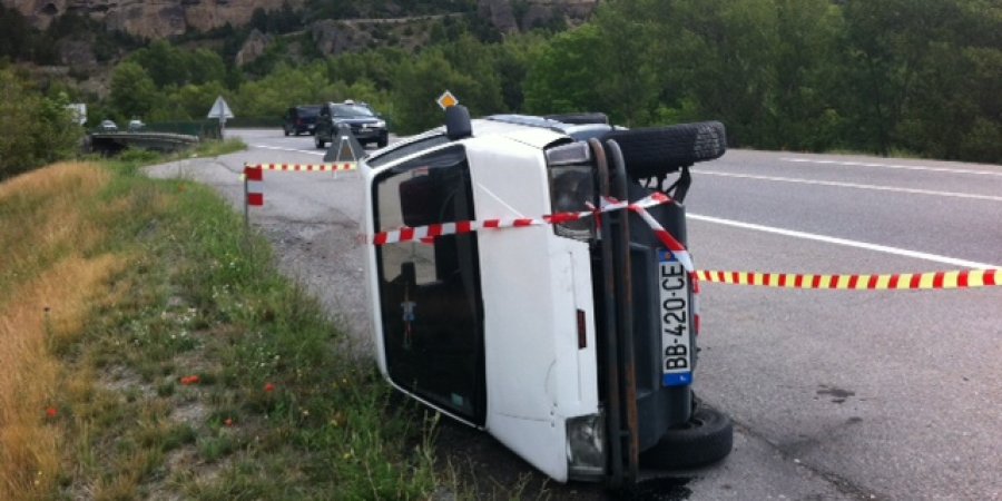 Hautes-Alpes : Voilà des semaines que cette voiture sans permis a été abandonnée au bord de la nationale au rond point de Guillestre ! La nuit dernière certains l'ont installés au dessus du rond point! Prochaine destination?
