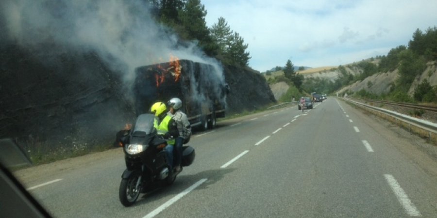 Une remorque de semi-remorque en feu ce lundi matin à 10h08 entre Chorges et Savines le Lac sur la RN94. Le conducteur du véhicule a réussi à décrocher sa remorque. La circulation est très pertubée une bonne partie de la journée compte tenu de la difficulté à éteindre la paille que contient la remorque.