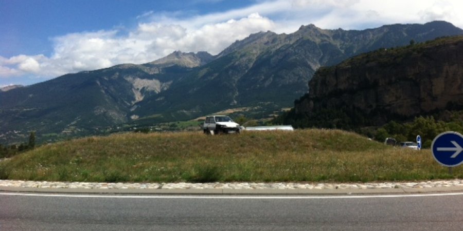 Hautes-Alpes : La voiture sans permis de Guillestre toujours sur le rond point!