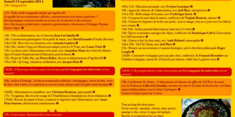 Cette traditionnelle foire Bio Génépi se déroulera autour du thème : La qualité BIO en restauration collective, comment passer à la VITESSE supérieure ? : Des dynamiques concrètes LOCALES au service des territoires et des citoyens.