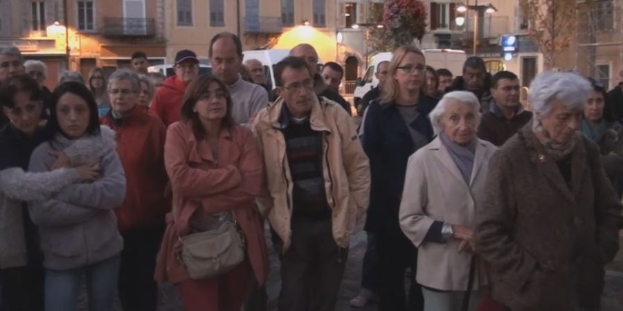 Beaucoup d'émotion et de recueillement hier soir devant la mairie de Bacelonnette. Devant près de 150 personnes, Yvan Bouguyon a rappelé les circonstances de la mort d'Hervé Gourdel". Cette cérémonie s'est achevée par un témoignage d'Anais, ancienne élève et amie du disparu et par une minute de silence :