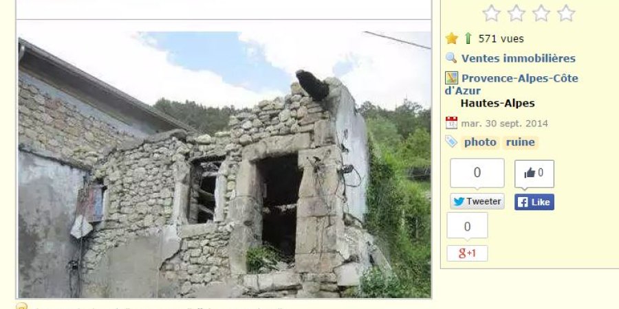 Annonce très sérieuse, et pourtant... 'Les Perles du Bon Coin", site internet qui répertorie toutes les annonces loufoques publiées partout en France, a trouvé un nouveau "trésor" dans les Alpes du Sud. La vente très sérieuse d'une maison type villa de 75 m2 à Veynes. Annonce publiée par une agence immobilière. Un seul problème: l'état. En effet, c'est une véritable ruine. Et le site "Les Perles du Bon Coin" de conclure: "nous avons là, un vendeur visionnaire".