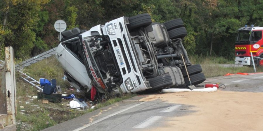 Hautes-Alpes : Accident de la circulation spectaculaire mais sans gravité ce matin sur la route en Gap et Veynes. Un camion citerne s'est renversé. Le conducteur a été légèrement blessée et hospitalisé sur Gap. Le camion contient 30 000 litres d'alcool pur (Eytanol à 96°). La route est donc coupée dans les deux sens. Pour les poids lourds, la route est coupée entre Veynes et Gap. Pour les voitures, dans le sens Gap-Veynes, une déviation est mise en place par Corréo pour rejoindre La Roche des Arnauds. Dans le sens Veynes-Gap, la route est déviée par Pelleautier.la circulations des poids lourds est interdite.