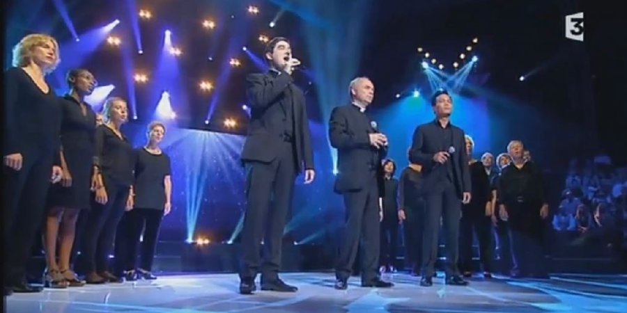 Les prêtres chanteurs étaient sur France 3 ce vendredi soir dans l'émission "300 choeurs pour + de vie" de Michel Drucker. Une émission co-présentée avec Bernadette Chirac, l'ex-première dame de France. L'idée : récolter le maximum de dons pour la Fondation Hôpitaux de Paris-Hôpitaux de France, dont la présidente est Bernadette Chirac. Les prêtres ont chanté "Ecris l'histoire", le tube de leur nouvel et dernier album "Amen". Extrait :
