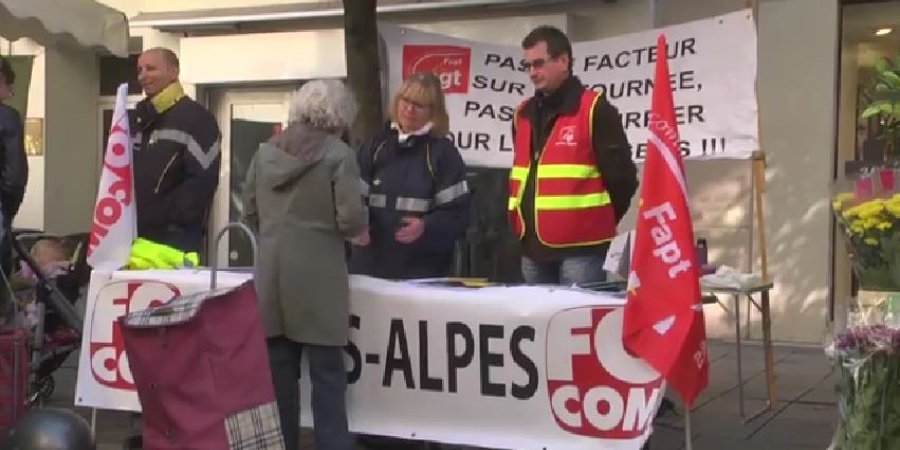 Les employés et syndicats FO et CGT du bureau de poste de Gap ont manifesté ce samedi sur le marché de Gap. Un stand a été tenu pour informer les citoyens et récolter des signatures à la pétition crée suite au plan de restructuration décidé après une baisse de la distribution de pli de 30%.