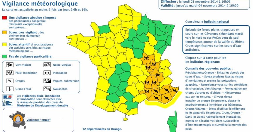 Alpes de Haute-Provence : Le département des Alpes de Haute-Provence vient d'être placé en vigilance orange aux orages. Une alerte valable jusqu'à demain après-midi 16 heures. 12 départements au total ont été classés ce lundi en vigilance orange par Météo France.