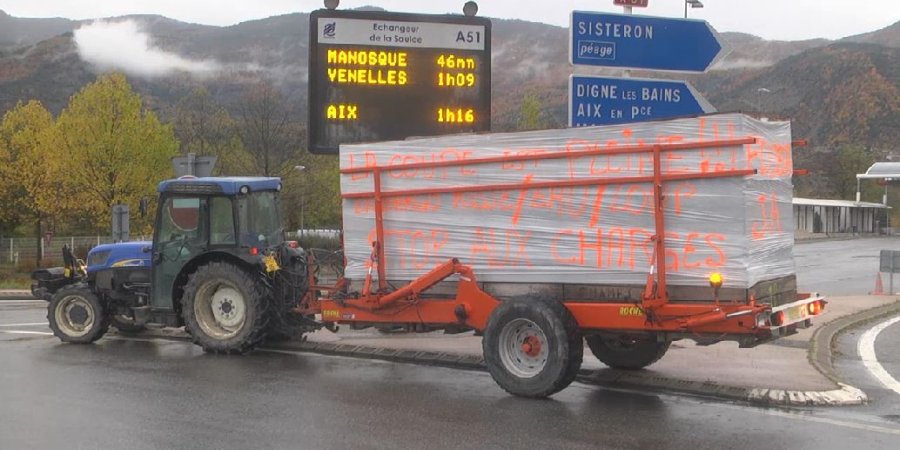 Ce mercredi, les agriculteurs ont manifesté partout en PACA. Dans les Hautes-Alpes la FDSEA a aussi organisé des actions. Les agriculteurs de la région de Tallard Barcillonette ce sont posté au rond point de l'A51 à La Saulce pour manifesté leur mécontentement. C'est un ras le bol pour Bruno André, agriculteur et délégué cantonal de la FDSEA.