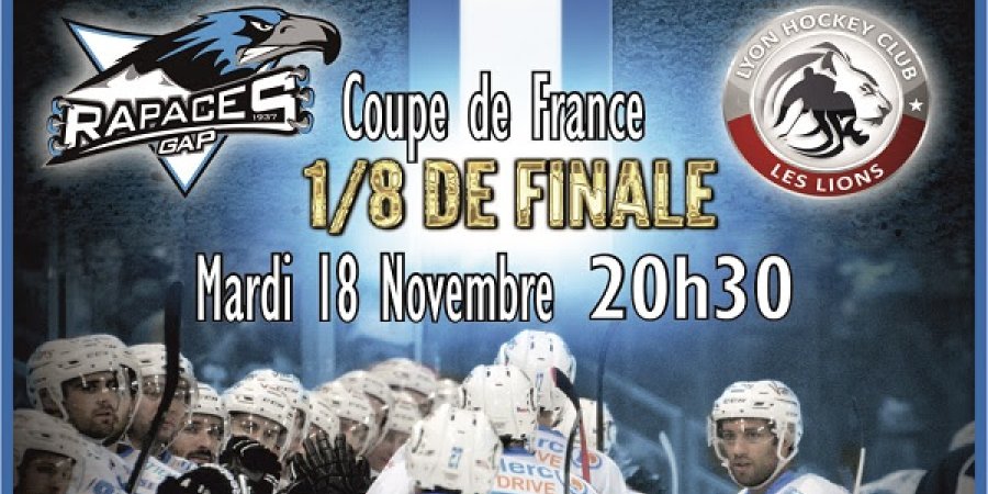 8e de finale de la Coupe de France ce mardi à l'Alp Arena de Gap, les Rapaces reçoivent les Lions de Lyon. La billetterie ouvrira ce mardi sur le parvis de la patinoire gapençaise à 18h00.