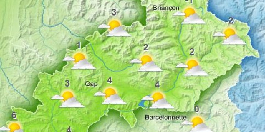 ou flocons au-dessus de 1200 puis 1500 m. Sur le Gapençais, l'Embrunais et le Queyras le ciel est plus lumineux et le