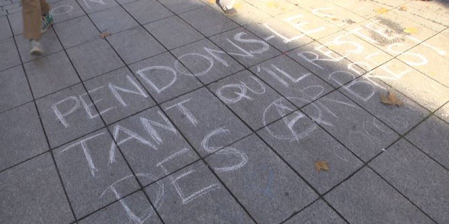 Journée nationale contre les violences policières et judiciaires partout en France et à Gap ce samedi matin sur l'esplanade de la Paix. Le collectif qui proteste régulièrement contre la mort de Rémi Fraisse au barage du Testet a distribué aux passants des craies pour qu'ils puissent inscrire au sol des messages. On pouvait y lire "désarmons la police" ou encore plus agressif "pendons-les tant qu'il reste des arbres". Magali, du collectif "Coordination contre les projets nuisibles et imposés" :