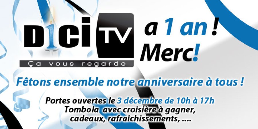 Bientôt le 1ère anniversaire de D!CI TV: Vous êtes les bienvenus aux portes ouvertes mercredi 3 décembre de 10h à 17h. En bonus: la distribution de pleins de cadeaux!