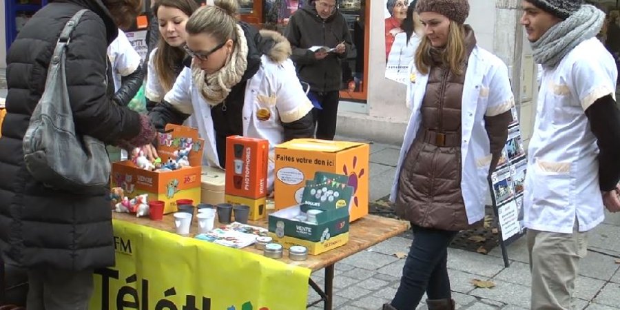 Sur le marché de Gap ce samedi matin, quelques stands dédiés au Téléthon. Les étudiants infirmiers de Gap ont participé. La recherche face à la maladie est pour eux essentielle.