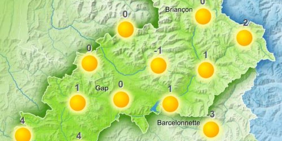 de saison avec un isotherme 0 degré vers 2200 m et des maximales de l'ordre de 6 à 9 degrés en vallées, 1 à 3 degrés