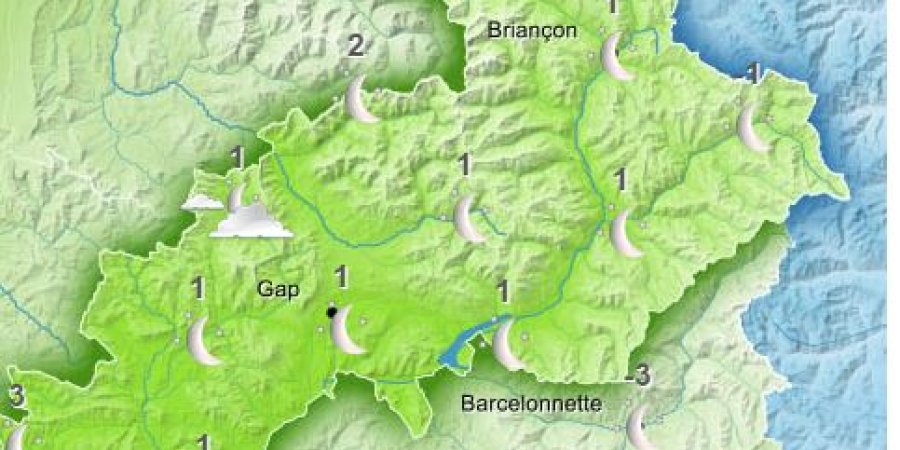 vent de sud-ouest apporte des nuages gris sur le sud des Hautes Alpes, des éclaircies se développent plus au nord. En