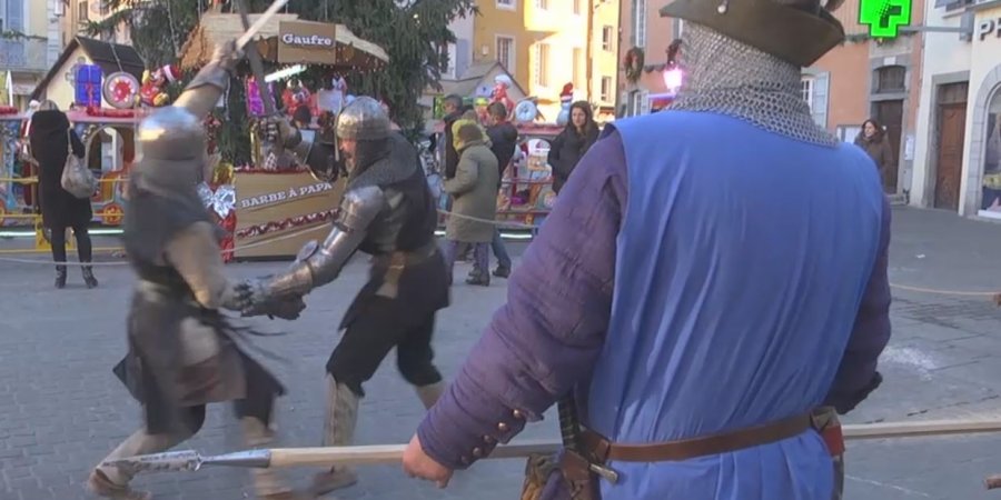 On continue dans les animations avant Noël avec un spectacle de combats d'épée médiéval dans les rues d'Embrun ce mardi après midi. L'Ost del Roy , la compagnie qui vient de Tallard, a amené ses épées, ses gantelets et sa bonne humeur pour proposer un spectacle impressionnant pour le plus grand plaisir des petits. Roger's Louis, le président de l'Ost del Roy :