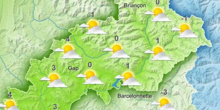 partagent le ciel. Des nuages bas peuvent s'inviter du Laragnais au Gapençais. Températures douces.