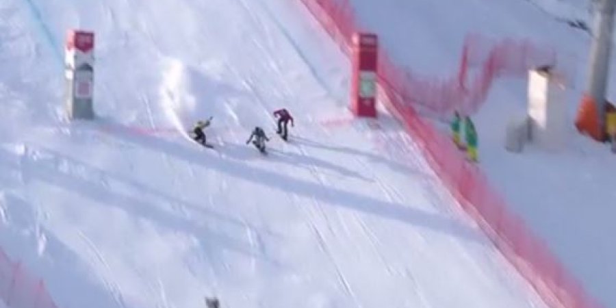 Ça passe in extremis pour Pierre Vaultier, le Briançonnais médaillé olympique de Boardercross lors des 8èmes de finale des championnats du monde de boardercross à Kreischberg, en Autriche ! Sur la photo, il est tout à gauche.