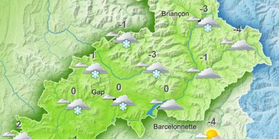 degré vers 1000/1300m. Vent faible à modéré de sud-est en vallée avec une possibilité de Lombarde près de l'Italie.