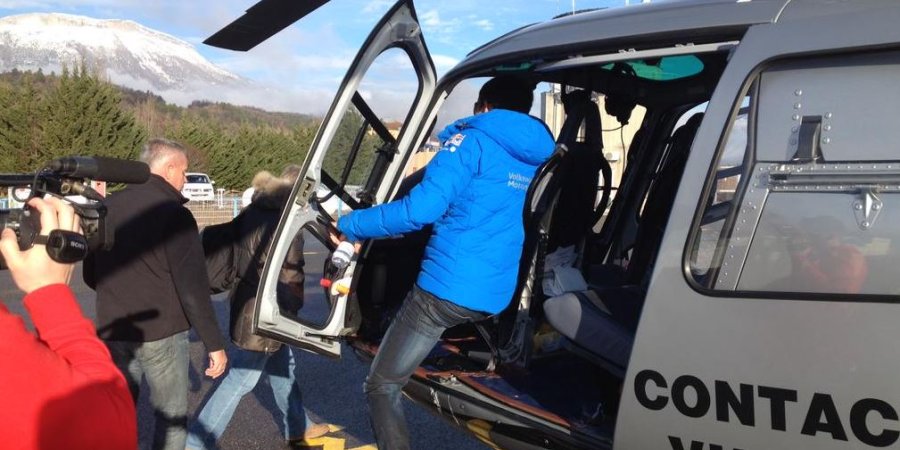 Gap-Monaco Express ! Séb Ogier et une partie de l'écurie Volkswagen sont descendus à Monaco en hélicoptère ! C'est le privilège accordé lorsque l'on est double champion du monde en titre des Rallyes WRC. C'est mieux que de devoir prendre le volant et surtout plus rapide !