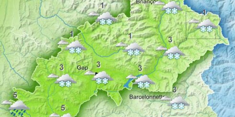 La perturbation quitte le département par l'Est en fin de soirée et début de nuit, et s'attarde un peu sur le Queyras. A