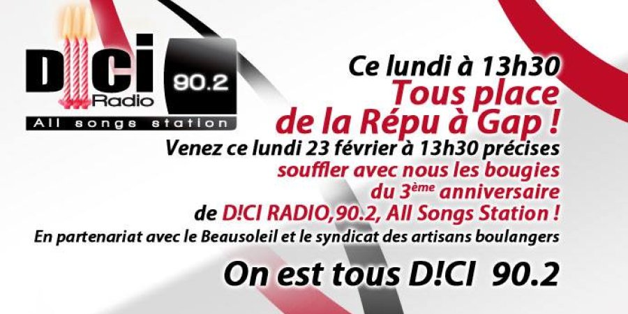 Et puis ce lundi, le 3eme anniversaire de DIC! radio. Beaucoup de surprises toute la journée et tous nos cadeaux multipliés par 3 pour cette occasion afin de vous dire un grand MERC!