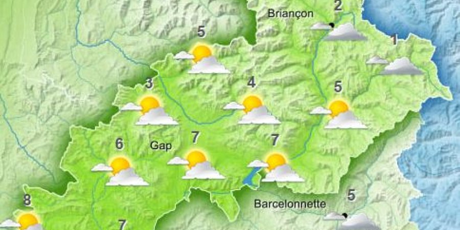 côté italien. Le vent en vallées est faible de secteur sud sur le Gapençais, le Rosanais et le Laragnais. Il est plus
