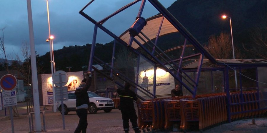 Plus de peur que de mal dimanche, en fin d'après-midi à Gap. Une violente tornade s'est abattue sur le parking de Leclerc. Peu avant 18 heures, des vents violents ont soufflé un abri à chariots. Heureusement, il n'y a pas de blessé. Mais dès 19 heures, des membres du personnel du magasin nettoyaient la zone pour éviter que le verre ne blesse un passant.