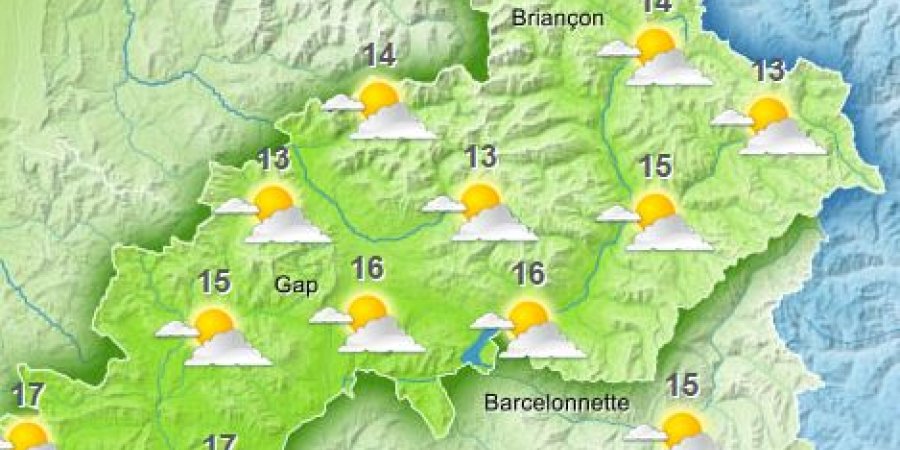 d'éclaircies. Les températures maximales affichent 16 à 20 degrés en vallées, localement 22/24 degrés à Gap ou