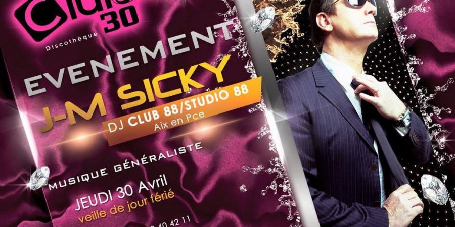Hautes-Alpes : Jean-Marc Sicky, dj résident au Club88 de 1991 à 2007, puis à la Fabrick à Aix en Provence de 2007 à 2011, puis retour au Studio depuis janvier 2012 sera au Club 30 de Chorges ce jeudi 30 Avril