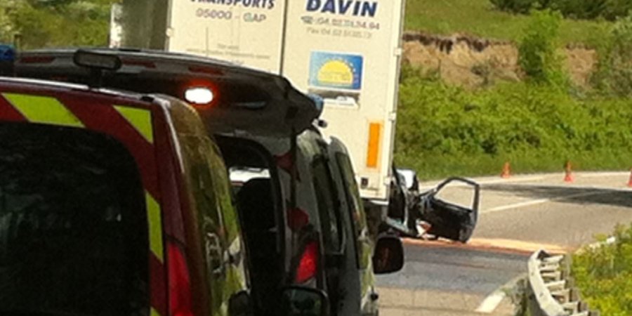 Hautes-Alpes : un terrible accident est survenu ce lundi peu après 12h, à la sortie Est de Gap, à hauteur du garage Audi. Une voiture a percuté très violemment un poids lourd, selon les premiers témoins ; le conducteur de la voitures serait décédé dans l'accident .Accident à la sortie de Gap direction la Bâtie-Neuve devant le concessionnaire Audi. Les pompiers sont actuellement sur place, une déviation aurait été mise en place via Romette. Plus d'information à venir.