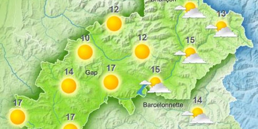 plus gris et de faibles averses sont possibles, le plus souvent cantonnées à la frontière italienne et à l'Ubaye.