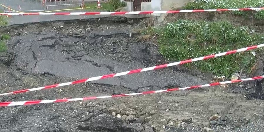 Ces images datent d'il y a quelques semaines, et pourtant rien n'a bougé. Cela s'est produit lors des derniers jours de février, au soir : un effondrement qui a évolué progressivement pour former un trou de onze mètres de diamètre et de plus de deux mètres de profondeur, au centre du village de Ceillac.