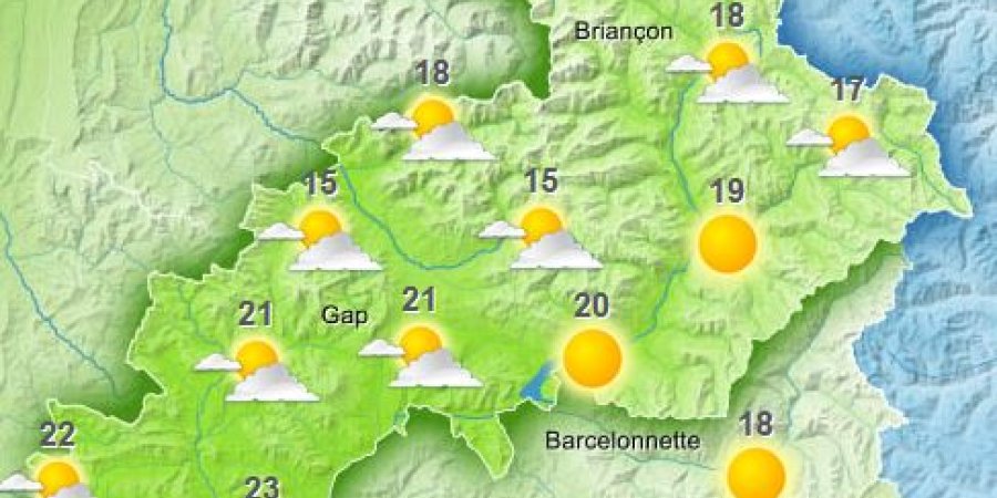 minimales sont tout juste de saison avec 9 deg à Embrun, 7 à Briançon, les maximales atteignen.