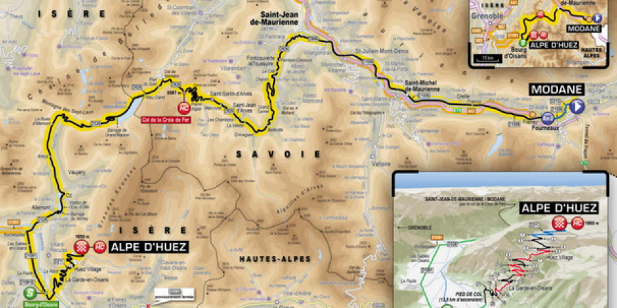 Les changements: Le col du Galibier ne sera pas au programme cette année mais le peloton empruntera le col de la Croix de Fer. Les coureurs prendront ensuite la vallée de l'Oisans et retrouveront l'itinéraire initial à Bourg-d'Oisans. Puis ils se lanceront dans l'ascension à l'Alpe d'Huez, où l'arrivée aura lieu.