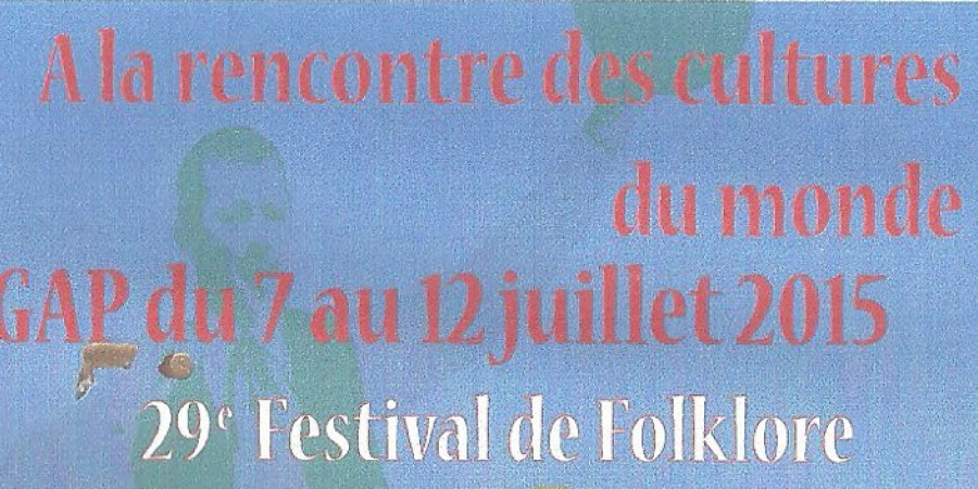 - vendredi 10 juillet : 19 h au kiosque de la Pépinière à Gap - Lever des couleurs en musique avec l'Orchestre d'Harmonie de Gap, en présence des groupes qui animeront la soirée grillade avec musique et danses traditionnelles : "Posagnot" d'Italie, "Des compères Créoles" de La Réunion et "Yawar Chicchi" du Pérou.