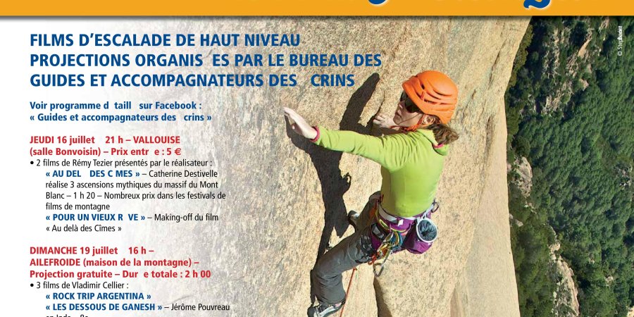 Au programme : des films d'escalade de haut niveau, projections organisées par le bureau des guides et accompagnateurs des Écrins !